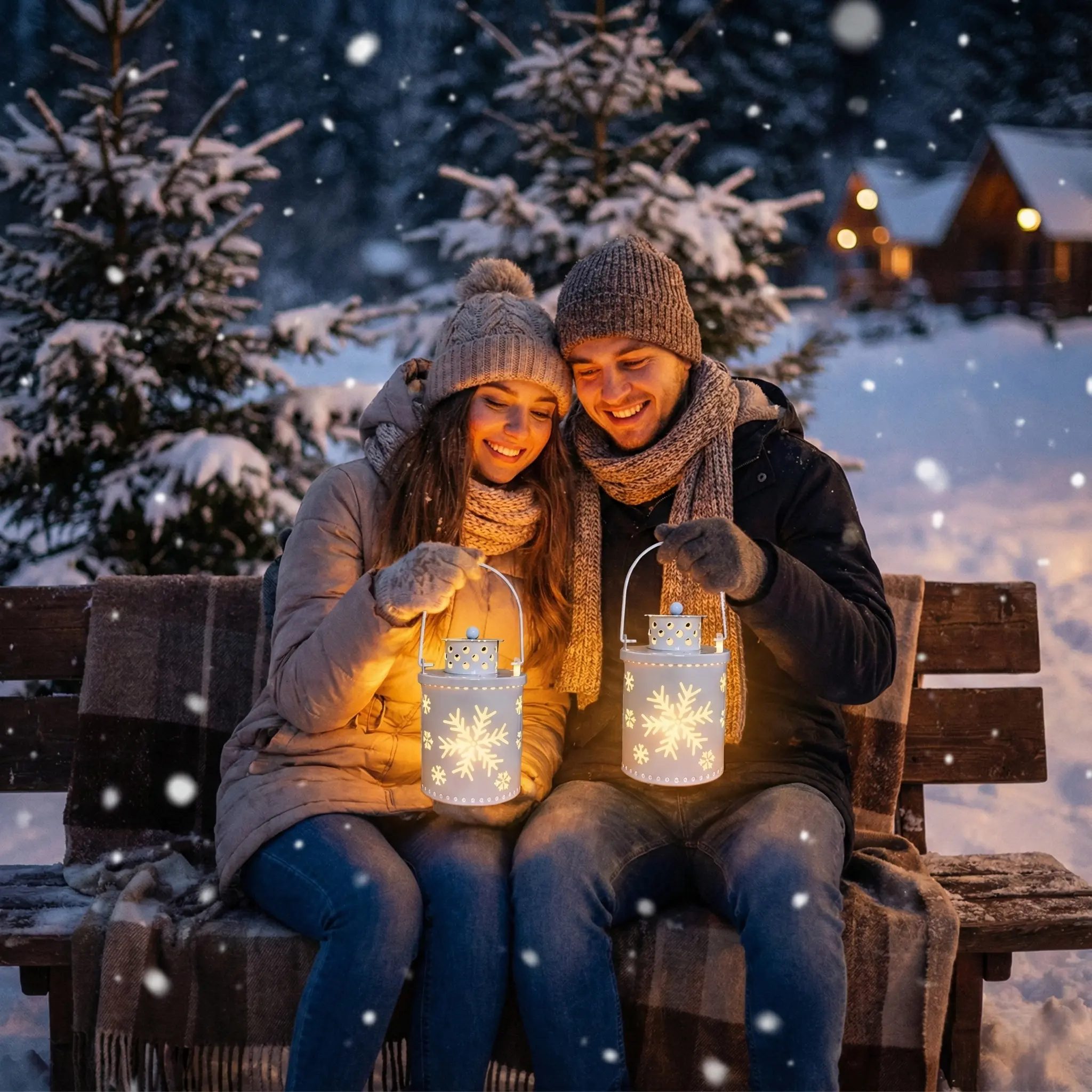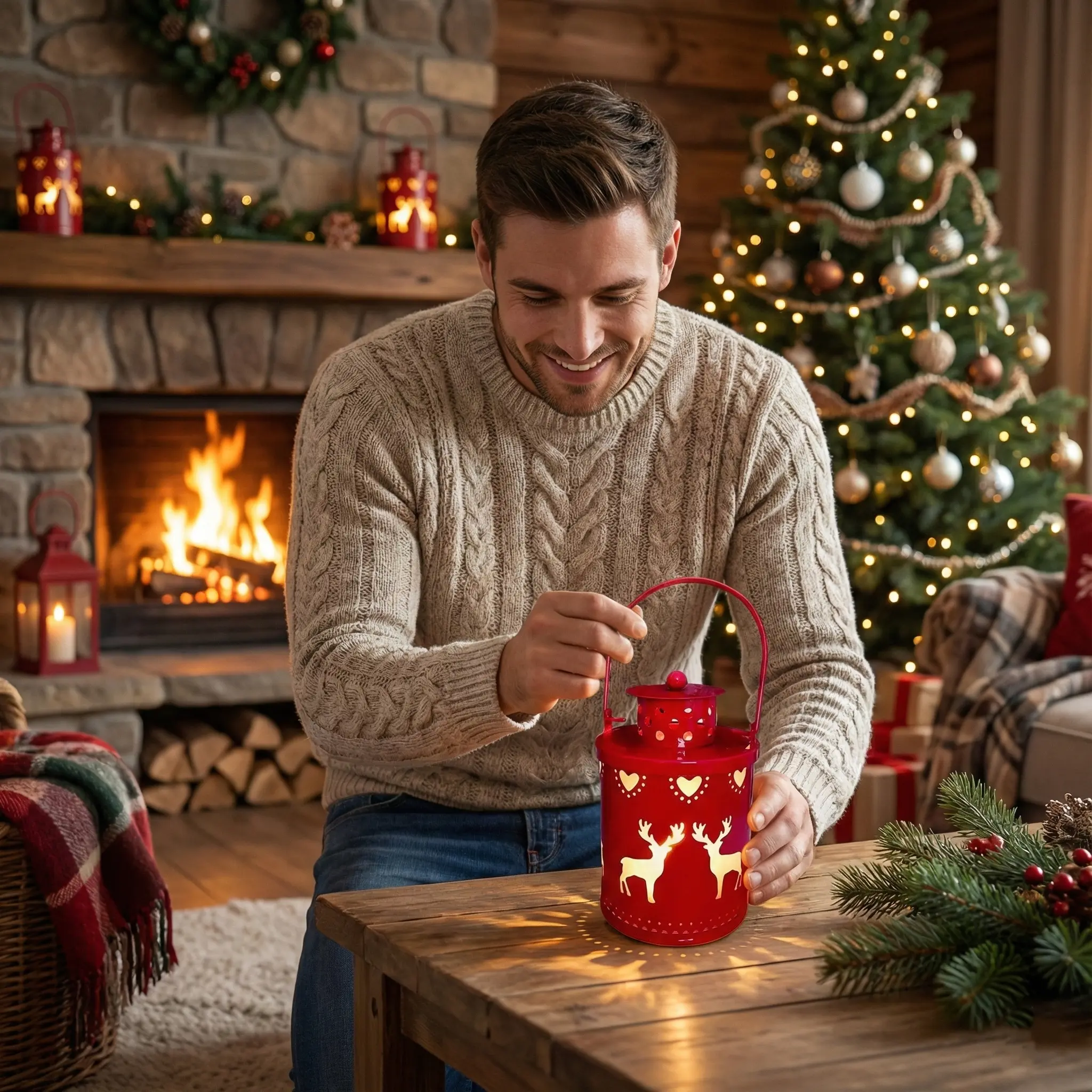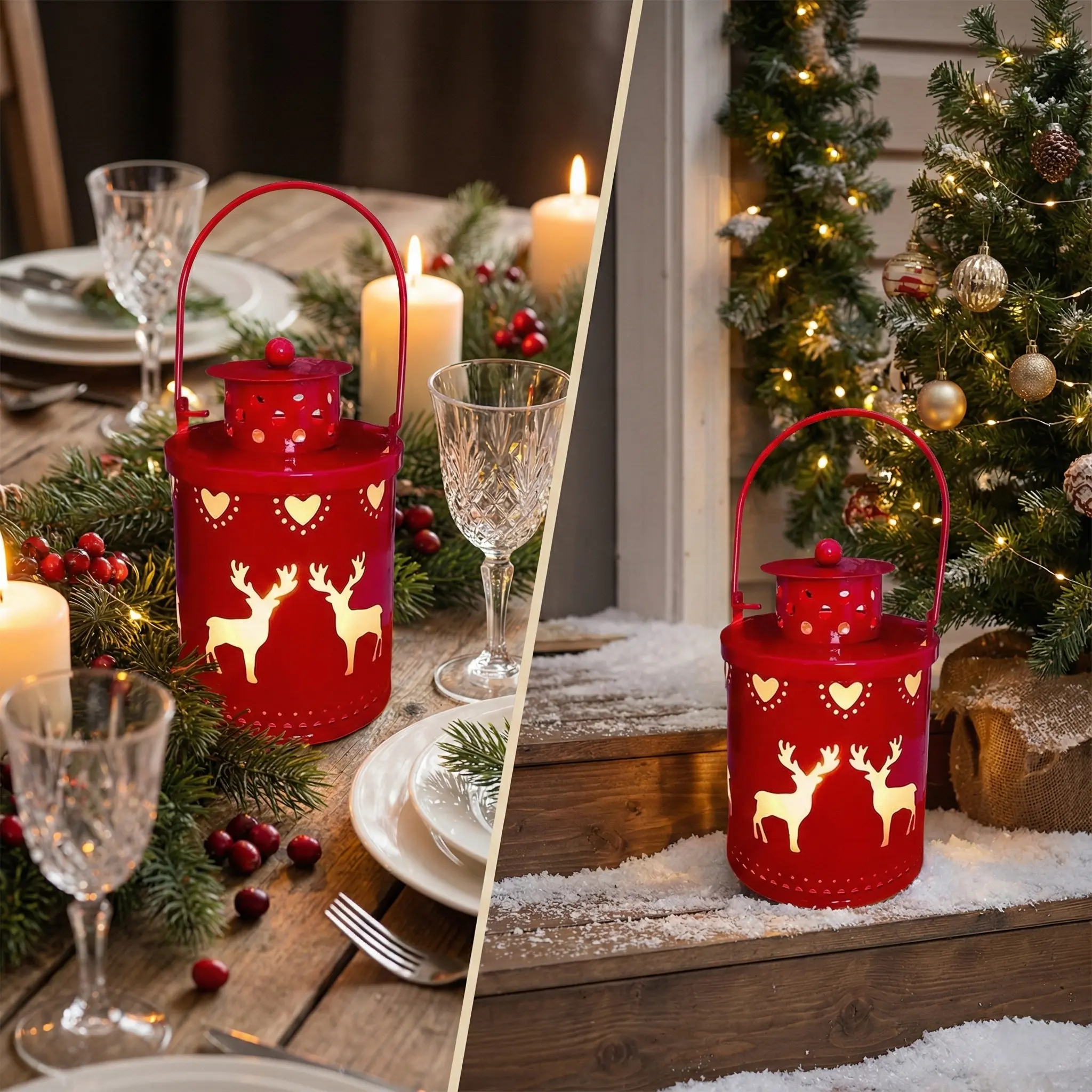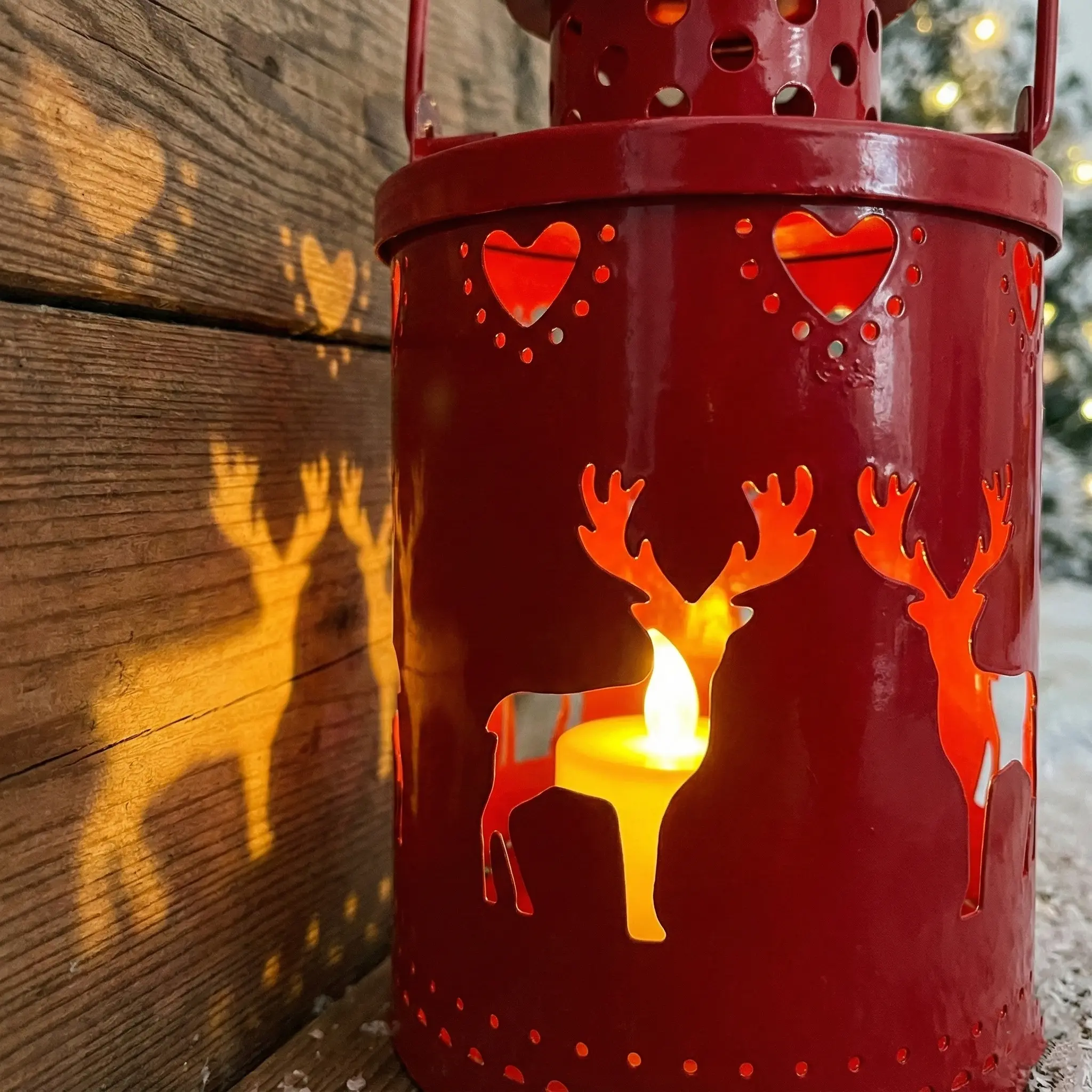 Nordic-inspired metal cutouts cast beautiful snowflake and reindeer silhouettes—creating memorable patterns of light that enhance holiday atmosphere and photography.
